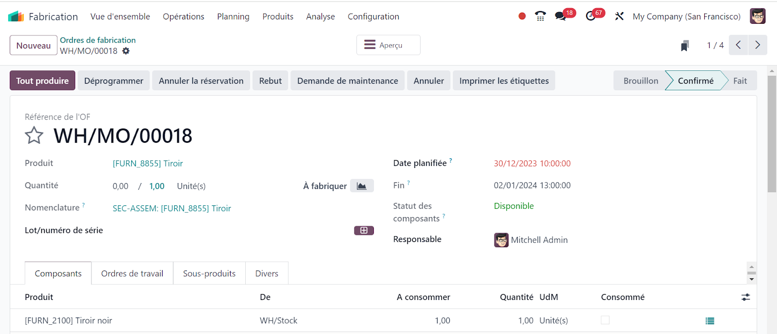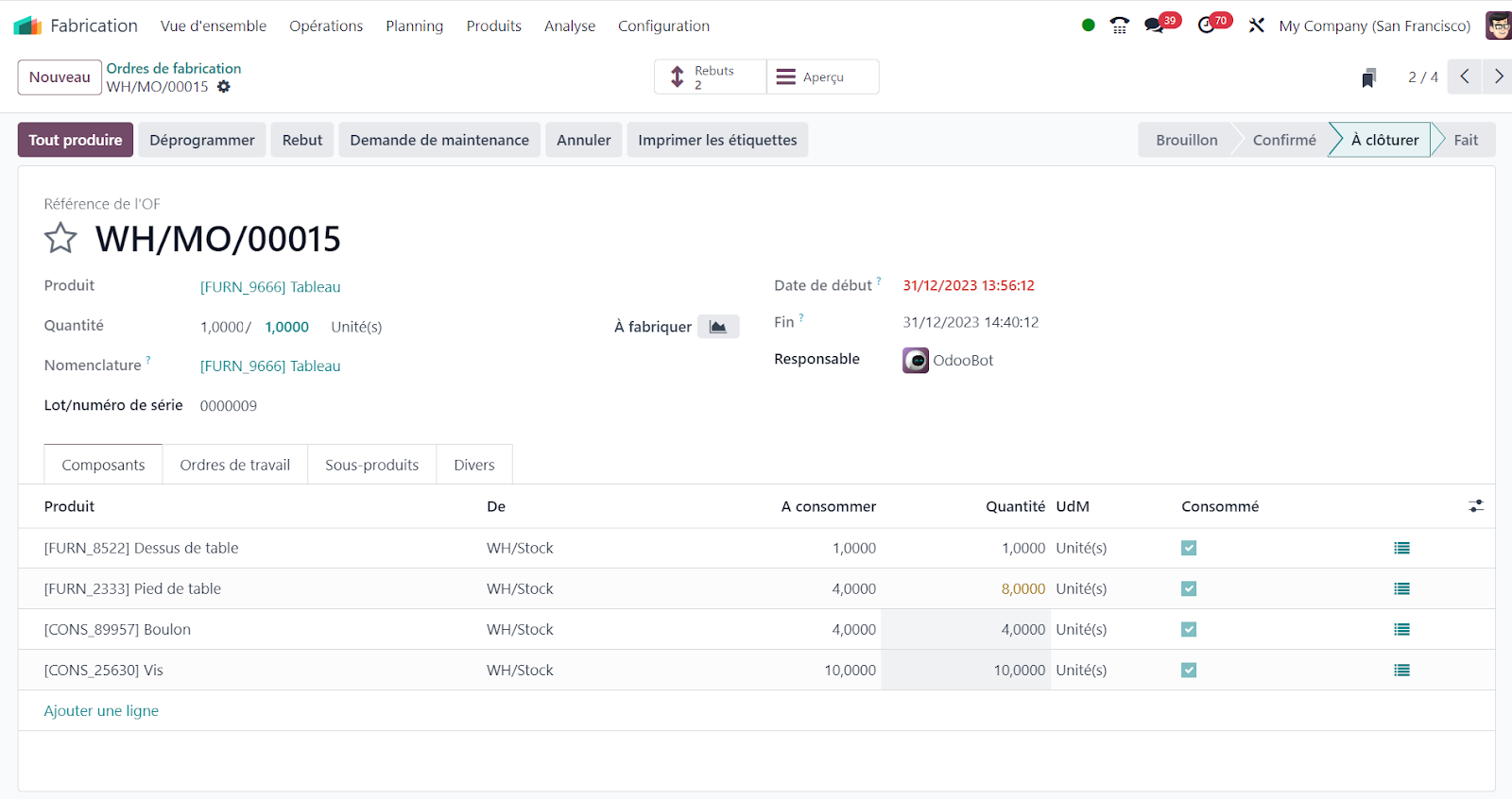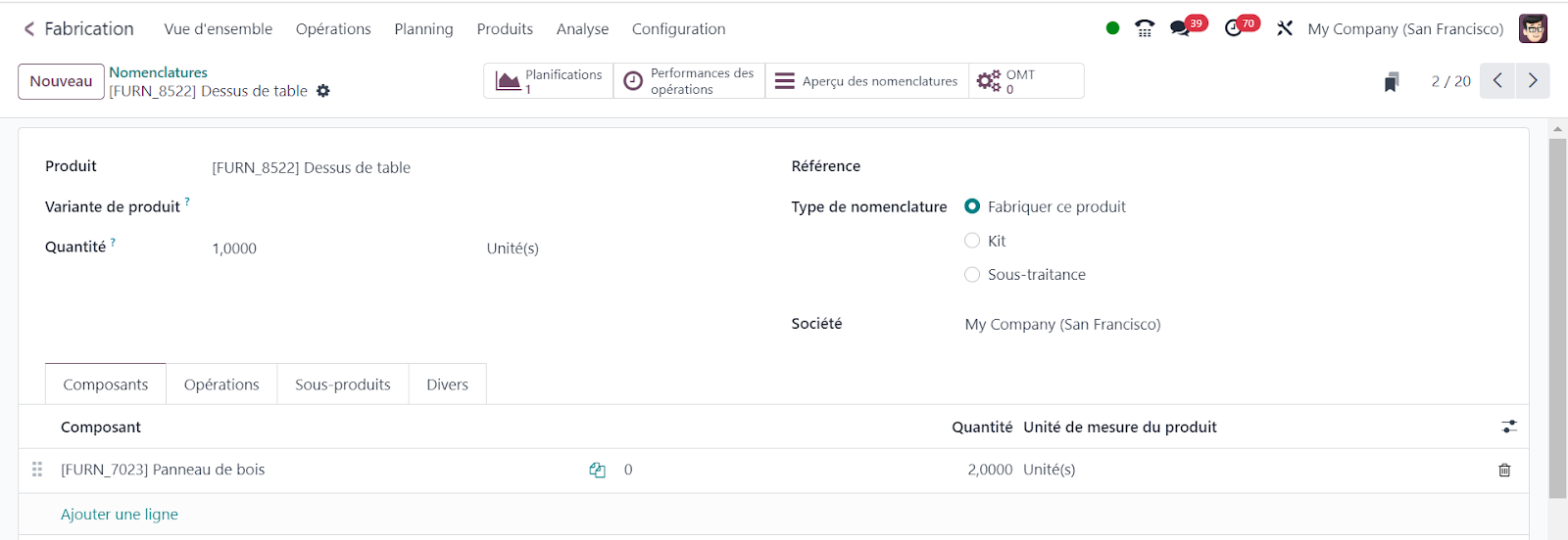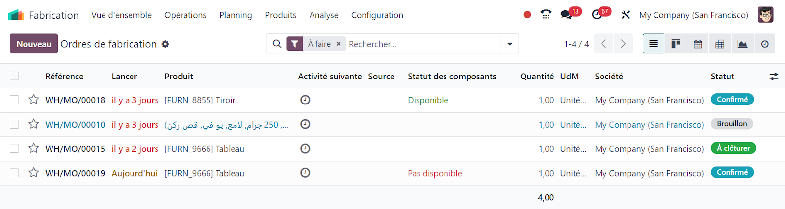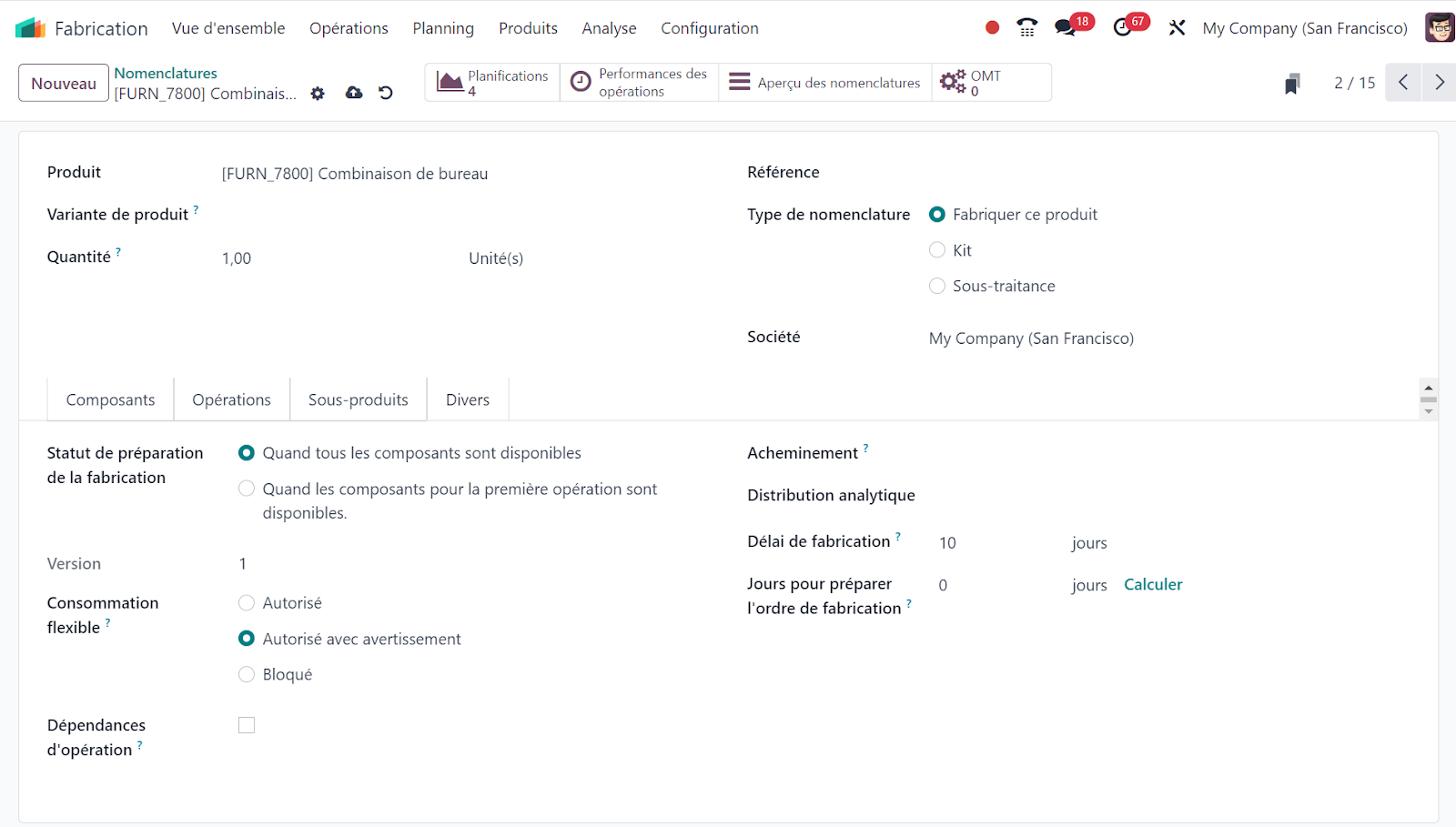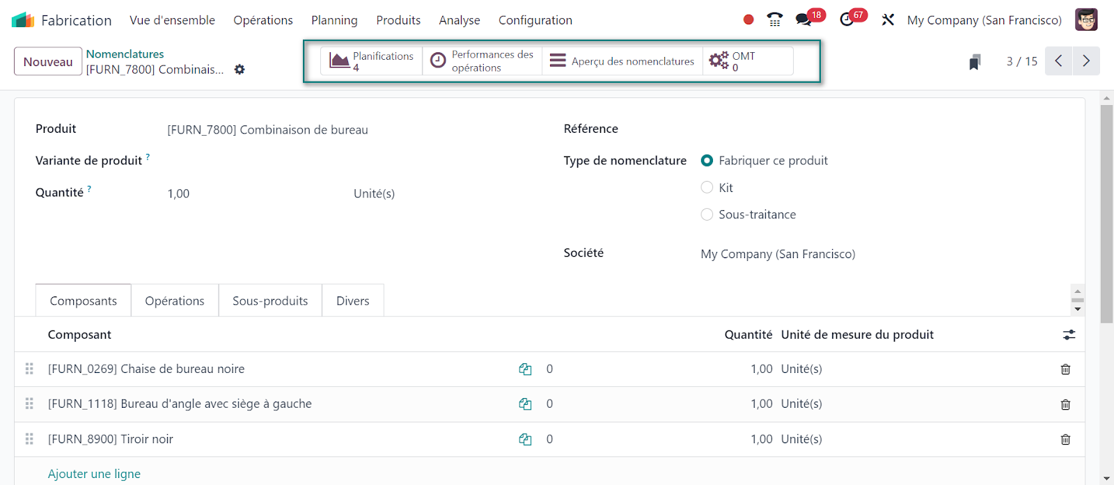 Voici quelques-unes des fonctionnalités clés du module fabrication dans Odoo :