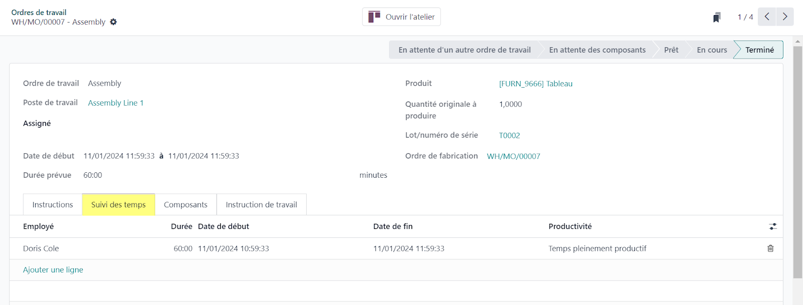 - Suivi des Opérations de Production : Permet de suivre l'avancement des opérations de fabrication en temps réel, offrant une visibilité complète sur le processus de production.