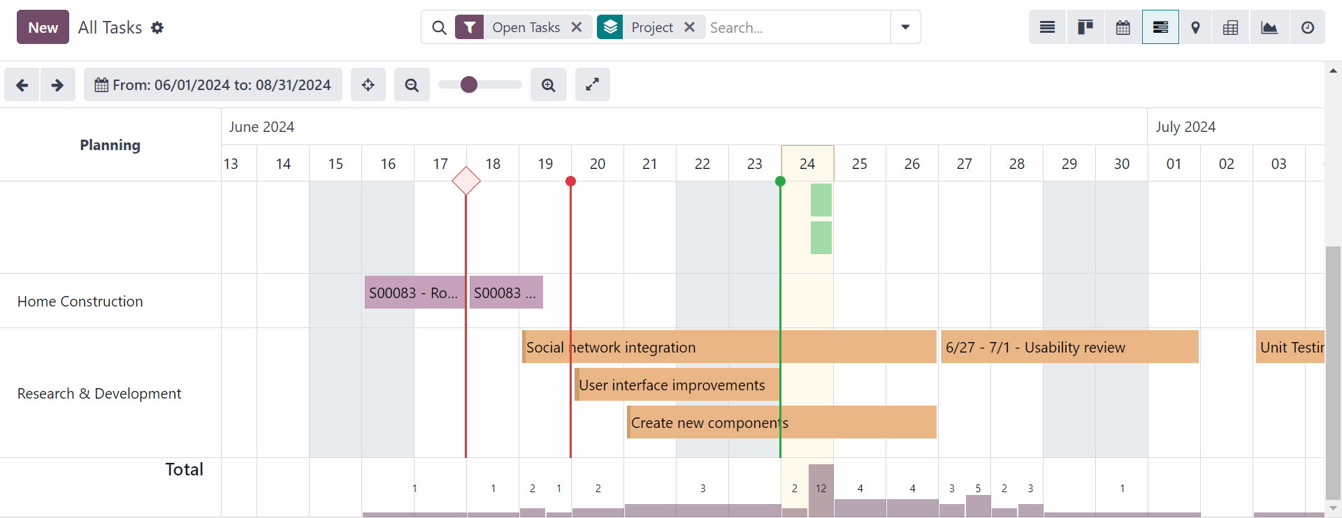 Les développements récents ont permis d'optimiser la coordination des projets, facilitant la recherche des personnes adéquates en fonction de leurs compétences et le suivi des révisions de tâches. De plus, une gestion optimale des produits sous garantie a été intégrée, renforçant ainsi la planification par site et l'intégration avec les activités de maintenance et la comptabilité analytique.