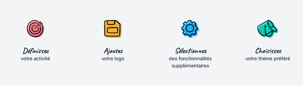 Odoo simplifie chaque étape de la création de votre site web. La création de votre site commence par un assistant convivial : un questionnaire rapide pour cerner vos besoins, votre secteur d’activité et votre choix de thème. En quelques clics, votre site prend vie.