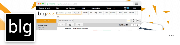 Blg Cloud propose une suite d'applications métiers complète, se composant d'un CRM, un ERP avec d’applications mobiles à destination des professionnels du Machinisme Agricole, Manutention, BTP et Poids Lourds. Sa richesse fonctionnelle permet, sans difficulté, de gérer clients, ventes, achats, stocks, parcs matériels, planning d’interventions, contrats de services, LCD, LLD.Des tableaux de bord temps réel sont disponibles pour chaque utilisateur, afin de faciliter le pilotage de votre activité.